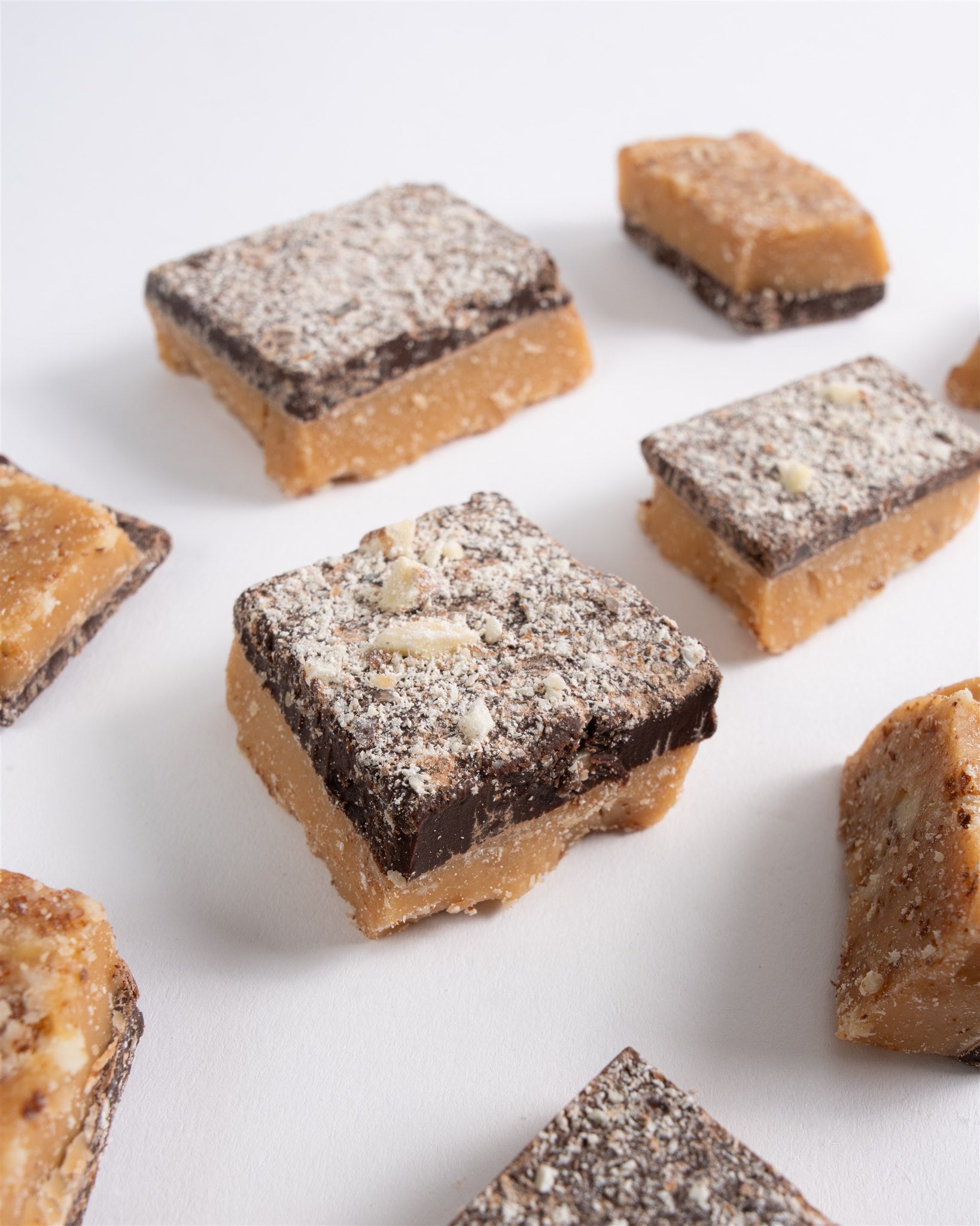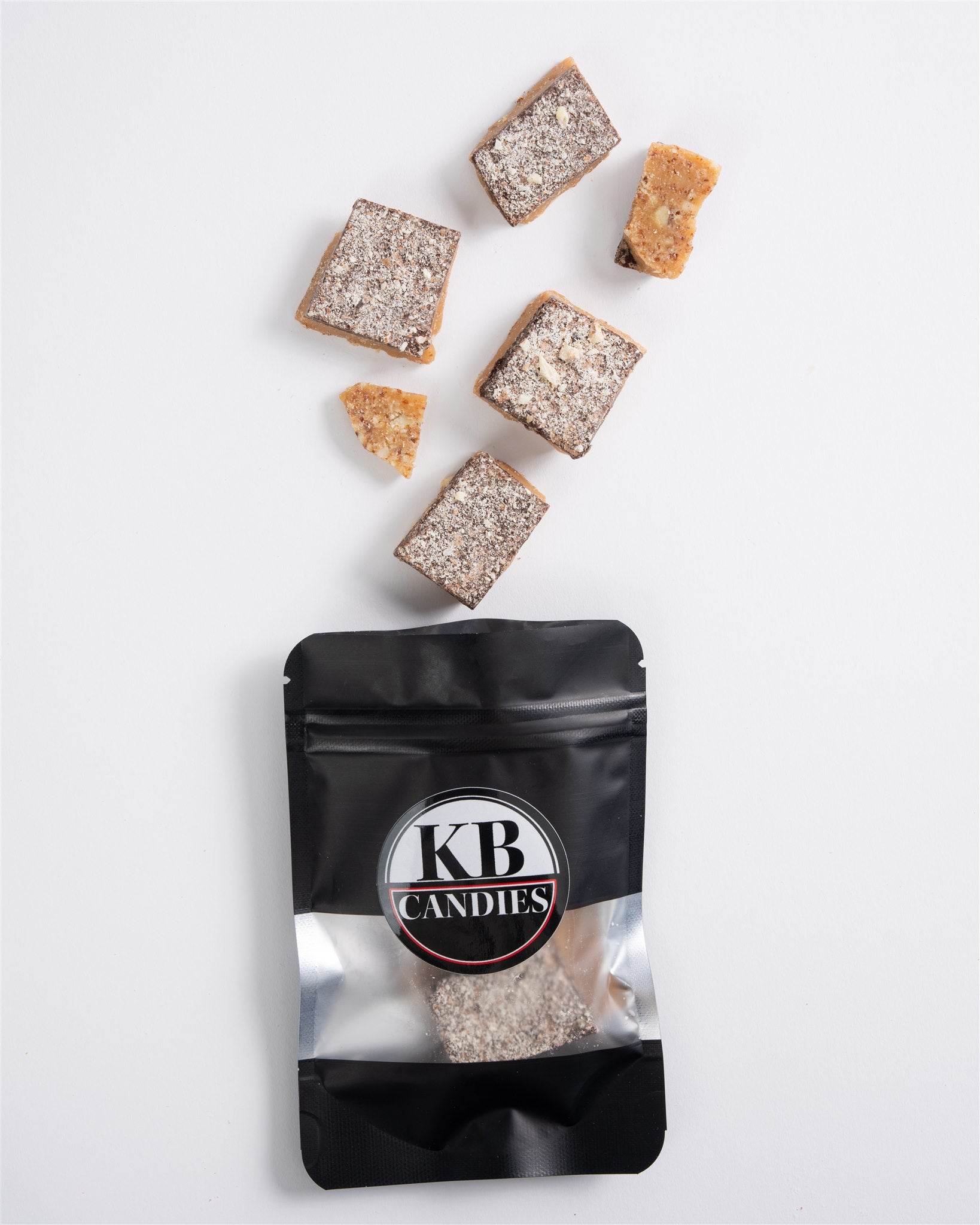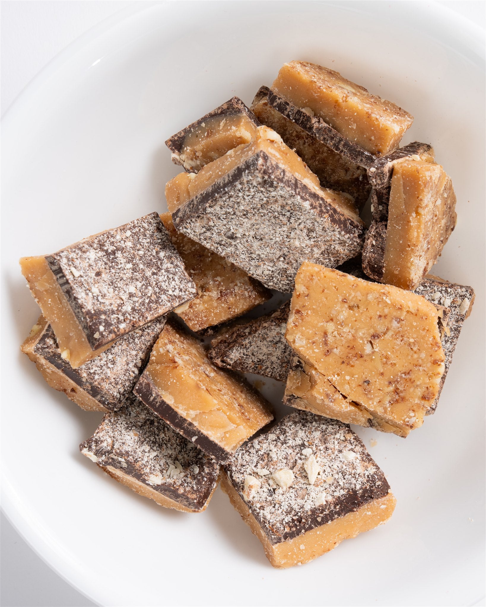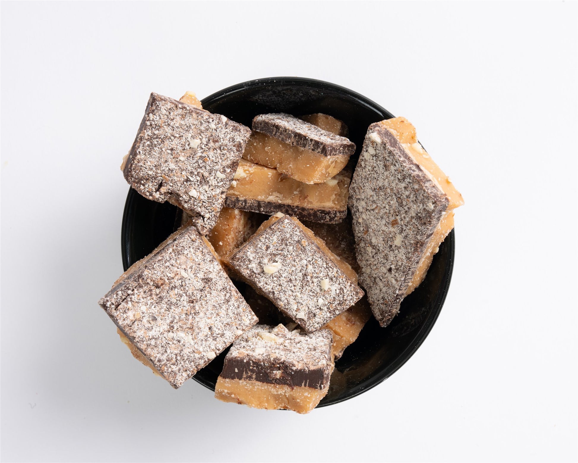 Sweet, salty, and a little sophisticated. Our almond toffee takes a dark, delicious turn with rich dark chocolate and a sprinkle of sea salt. It’s the perfect bite for grown-up taste buds. But don’t be surprised if the kids steal some too.