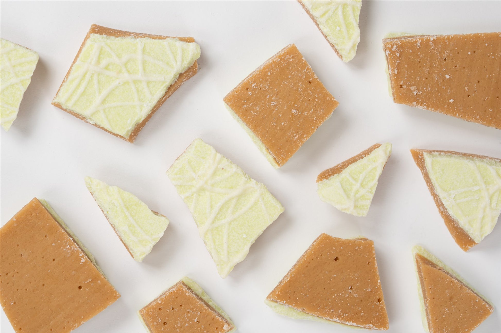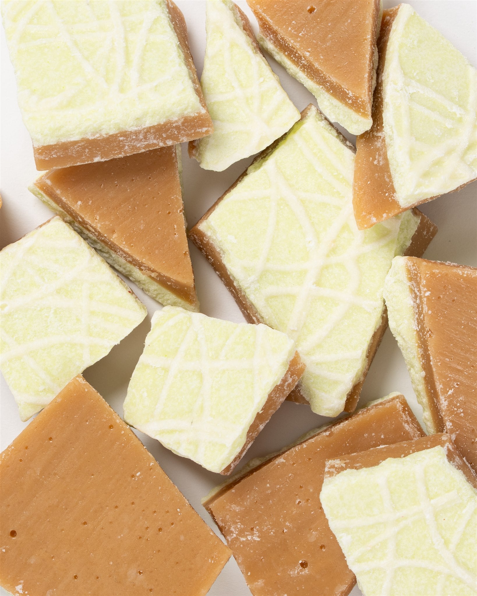 A combination of 2 classics: key lime, and toffee, we bring together key lime flavors with a creamy white chocolate and top our soft crunch toffee into a delicious summery treat.
