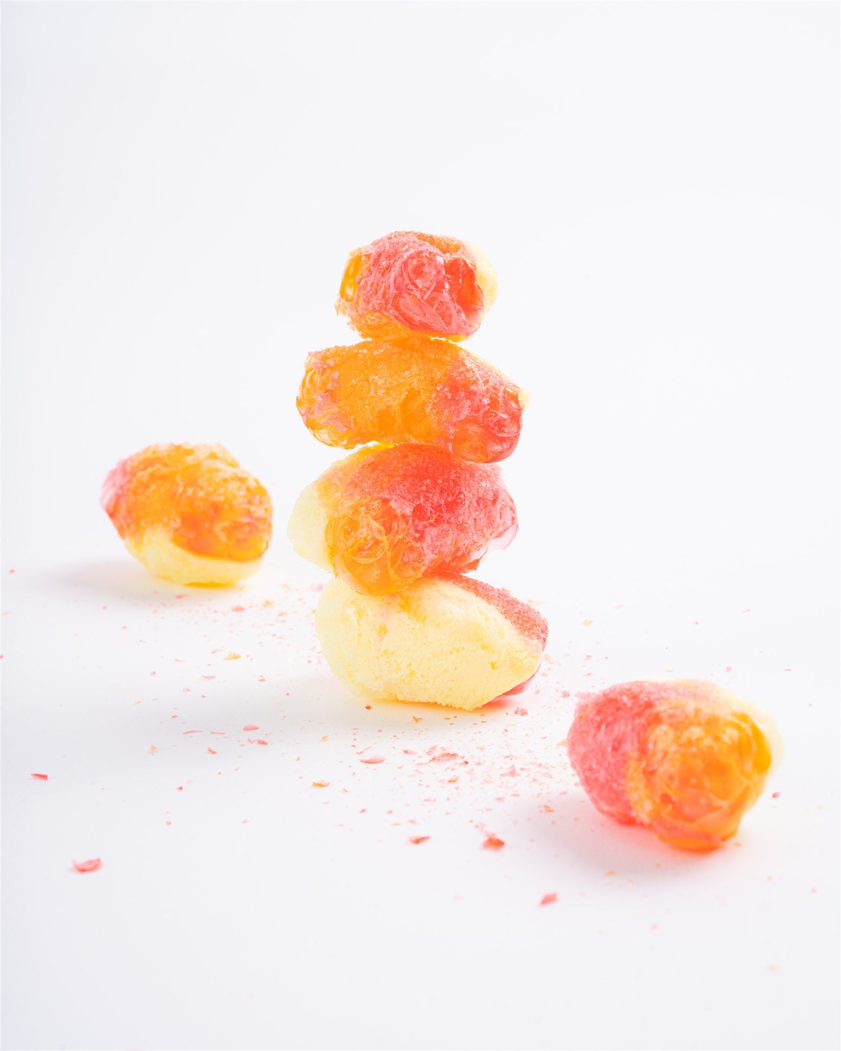 All the peachy goodness, but crunchy instead of chewy. These freeze dried classic peach rings are bursting with sweet, tangy flavor in snackable bites.